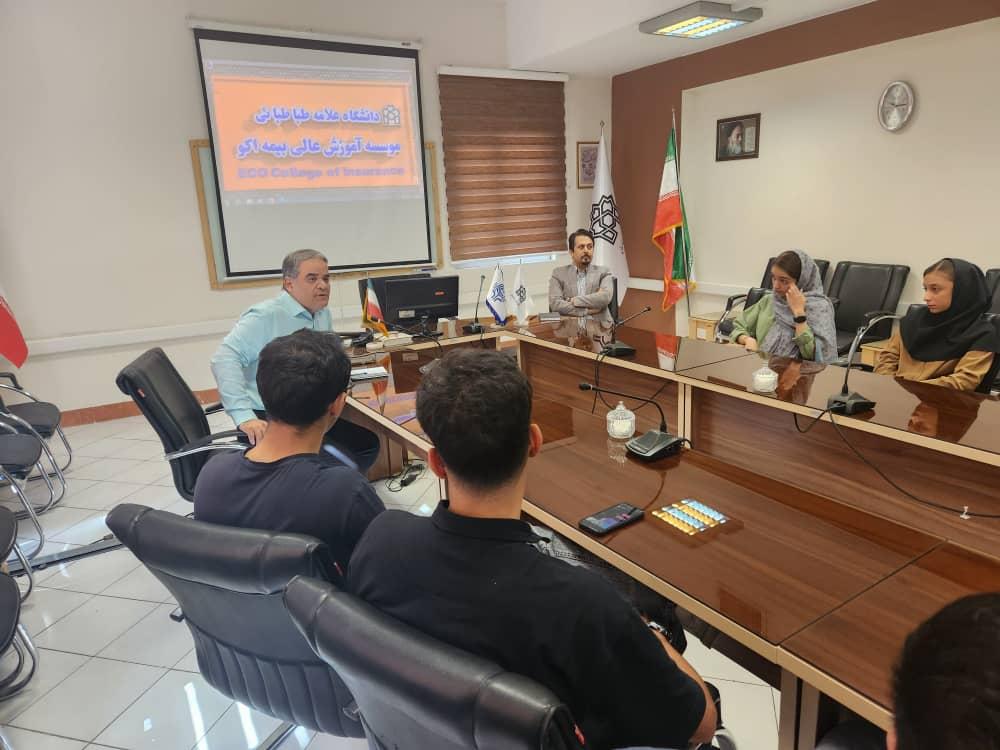 بهمناسبت شروع سال تحصیلی جدید، بهرسم دو سال گذشته، نشست صمیمانه مدیران موسسه با نمایندگان دانشجویان رشتهها و مقاطع مختلف با عنوان «صریح و صمیمی با مدیران موسسه» در روز بیست و هفتم مهرماه در سالن شورای موسسه و با حضور جناب آقای دکتر شکوهی، رئیس موسسه آموزش عالی بیمه اکو، جناب آقای دکتر افقی، معاون محترم موسسه و مدیران محترم امور دانشجویی و امور عمومی برگزار گردید. این نشست با هدف شنیدن انتقادها و رفع مسائل و مشکلات دانشجویان برگزار گردید.